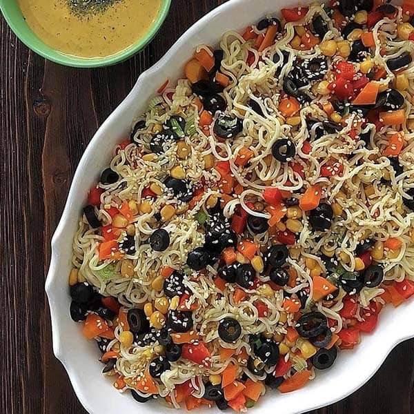 سالاد یکی از پیش غذاهایی است که مورد علاقه افراد زیادی قرار دارد. همچنین از بعضی سالادها می توان به عنوان وعده سبک غذایی نام برد. یکی از انواع این سالاد ها، سالاد نودل است. نودل یک توع ماکارونی یا پاستا نیمه پخته است که فقط کافی است در آب جوش قرار بگیرد و آبکش شود. این سالاد را می توان به عنوان پیش غذا در مهمانی ها و یا عصرانه در تولد ها سرو نمود.